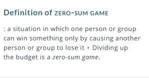The STANDS4 Network. In such situations political decisions will be made on the basis of trade-offs between competing interests. Non-Zero Sum Game Definition.